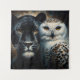 This wild animal tapestry features a black panther and a snowy owl next to each other as if posing for a portrait. This richly detailed artwork captures the raw beauty and mystique of two powerful and intelligent predators side by side, their golden eyes glowing with silent wisdom. Or plotting.
