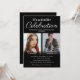 Modern black & white joint birthday party invitations featuring a simple black background that can be changed to any colour, 2 photos, and a elegant double celebration template that is easy to personalise.