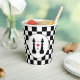 Gay wedding paper cups with a chess theme, with two king pieces in black. Add your initials between the chess pieces with a red heart.