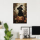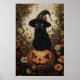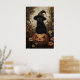 Black Kitten In A Witch's Hat With Pumpkin Print, Halloween Cat Vintage Poster, Dark Academia Printable, Сottagecore, Gothic Painting