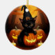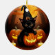 Black Kitten in Witch Hat Amid Halloween Pumpkins Ceramic Ornament