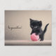 Black Kitten Playing with Pink Ball of Wool Postcard