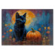 Black Kitten Pumpkin Full Moon Autumn Leaves Cutting Board