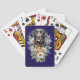 Playing cards with black lab dog design. A beautiful pup sits among tall wildflowers on a dark, navy blue background.