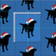 Black Lab Dog wearing Santa Christmas Hat Fabric