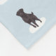 Blue fleece blanket with black labrador retrievers on it.