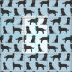 Black lab on light blue.