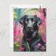 A striking modern art portrait of a black lab set against an abstract pink and green floral garden background. The dog’s dark silhouette contrasts beautifully with the vibrant, swirling colours of the garden, blending nature and animal in an expressive, contemporary style. The abstract brushstrokes create a sense of movement and energy, making this unique piece both playful and visually captivating.