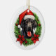 Celebrate the holiday season with our festive black labrador retriever Christmas wreath ornament. This charming ornament features a vibrant illustration of a green Christmas wreath, with the adorable face of a black lab wearing a cheerful red Santa hat at the centre. Perfect for dog lovers and holiday enthusiasts, this delightful decoration adds a touch of festive cheer to any Christmas tree. Made from high-quality materials, it ensures lasting beauty year after year. Hang it on your tree or gift it to friends and family for a heartwarming holiday surprise.