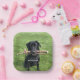 Black Lab with two sticks Dog Photo and Name Paper Plate