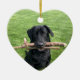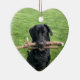 Black Lab with two sticks Dog Photo Ceramic Ornament