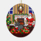 Black Labrador and Santa Christmas Cartoon Ceramic Ornament
