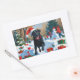 Black Labrador Christmas Festive Snow Scene Rectangular Sticker