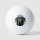 Golf balls with a customisable photo of a cute black Labrador and a custom text. Personalise it with your own photo and a name.