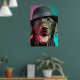 Black Labrador Dog in Fedora Hat Colourful Vibrant Poster