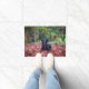 A black Labrador retriever laying amongst brown, yellow and orange autumnal leaves, with leaves falling through the air