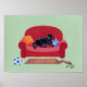 Unique and funny Labrador Retriever Art painted by Naomi Ochiai from Japan. An adorable Black Labrador on the couch with his favourite toy. Doesn't it look like a familiar view? Nice gifts for Black Lab owners!!