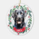 Decorate your tree or give a special gift this holiday season with this elegant Merry Christmas black labrador retriever in a wreath design christmas ornament, and matching decor. This black labrador christmas ornament features a watercolor dog in a green and red wreath with holly and berries. Personalise with name front, year back . This black labrador christmas ornament will be a favourite among black labrador lovers, dog lovers, and animal lovers. Visit our collection for matching black labrador christmas cards, home decor, and gifts. COPYRIGHT © 2020 Judy Burrows, Black Dog Art - All Rights Reserved. COPYRIGHT © 2020 Judy Burrows, Black Dog Art - All Rights Reserved