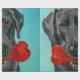Ozzie is rockin' the look with his big red bone! Original painting is 16X16" oil on gallery wrapped canvas.