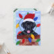 Whimsy and funny Labrador Retriever Painting painted by Naomi Ochiai from Japan. An adorable Black Labrador Puppy is popping up from the chimney. :) Santa Hat on the head. Black Labrador Puppy Christmas Cards and Gifts for dog lovers who love Black Labs!! You can customise text and more!