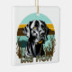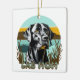Personalised Christmas ornament. AI art watercolor black lab with a vintage sunset with retro colours teal and brown.