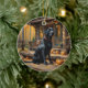 Black Labrador Retriever Log Cabin Autumn Ceramic Ornament