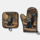 Black Labrador Retriever Log Cabin Autumn Oven Mitt & Pot Holder Set