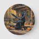 Black Labrador Retriever Log Cabin Autumn Round Clock