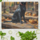 Black Labrador Retriever Log Cabin Autumn Tea Towel