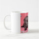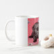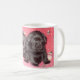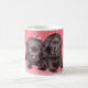 2 adorable black Labrador Retriever puppies in a holiday background on a mug.