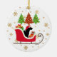 Black Labrador Silhouette Christmas Sleigh Ceramic Ornament for Labrador Fans. Black Labrador sitting on Santa's Sleigh in the forest. Created by Naomi Ochiai.
