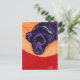 Adorable Black Labrador Retriever Painting postcard painted by Naomi Ochiai. Black Labrador Dog Portrait. This boy/girl is staring at his/her Mum or Dad or just you!! Vibrant red colour background. You can customise text as you like. Nice gifts for dog lovers who love Labradors!