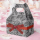 Gable-style favour box with an image of black lace over white adorned with a red satin ribbon with a red satin bow with a ruby heart detail. See the entire Cancan Favour Box collection in the PARTY FAVORS section.
