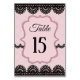 Create custom table numbers that match the style of your wedding. These cards are ready to be customised with your own choice of table number. They feature my black lace illustrations set against a soft pink background with a faux quilted look and an ornate pink frame for making the table number stand out.