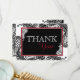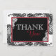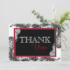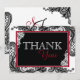Elegant black lace over white background and white lace over black background with red and black monogram and white contrast modern goth thank you card.