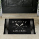 Welcome guests to your lakeside abode with this charming rustic doormat that's perfect for your lake house or vacation home. Personalised design features your family name in neutral tan lettering, along with your year established and a pair of crossed oars. Rope stripe detailing on a rich black background completes the design.