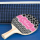 Black Lattice / Chevron Patterns Pink Name Ping Pong Paddle