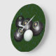 Black Lawn Bowls And Kitty On Green, Large Clock
