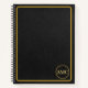 Black leather with a simple gold frame makes a beautiful and elegant notebook that's perfect for the office, at school, or at home. A small circle on the front holds your monogram.