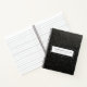 Modern notebook features a minimal design in black and white on a black leather print background. Custom name, title and company name presented in a framed window in classic block typography.