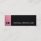 This contemporary business card design combines a dramatic black front with a vertical pink panel and monogram on it, and a light, minimalist back to achieve a refined and balanced appearance. The front establishes a bold and confident identity, while the white reverse side provides a clean and accessible space for your contact details. Thoughtful typography and spacing ensure excellent readability, while the overall design feels cohesive, feminine and modern. A perfect choice for professionals seeking a stylish, practical, and memorable card that works in any business setting.