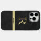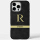 Black Leather Texture Monogram Name Gold Case-Mate iPhone Case