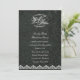 This elegant country wedding invitation features images of black tooled leather, white lace, and a vintage dove banner. NOTE THAT ALL ELEMENTS ARE PRINTED ON THE PRODUCT--THERE IS NO ACTUAL WOOD, LACE, etc. Shown on basic paper--you can change to linen, felt, or whatever you prefer.
