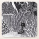 Black leopard in the jungle - pencil drawing square paper coaster