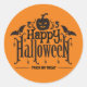 Black Lettering of Happy Halloween with pumpkin Classic Round Sticker
