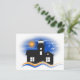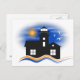 © Sunny Mars Designs - Lighthouse Seascape Customisable Postcard - Fun, cool fully customisable post card featuring a modern black lighthouse silhouette illustration on the beach with the sun, white seagulls and abstract waves representing the sand and the sea.