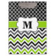 Black Lime Green Chevron Monogram Clipboard