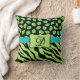 Black, Lime Green & Turquoise Zebra & Cheetah Skin Cushion