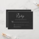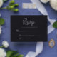 Whimsical minimalistic modern, customisable white script typography, elegant RSVP response card invitation. The black printed linen texture background adds a touch of organic feel of classic elegance. Other colours are available.