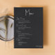 Whimsical minimalistic modern, customisable white script typography, elegant wedding menu. The black linen printed texture background adds a touch of organic feel of classic elegance. Other colours are available.